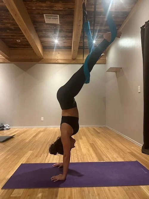Sara doing aerial yoga